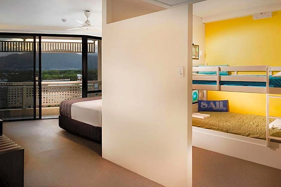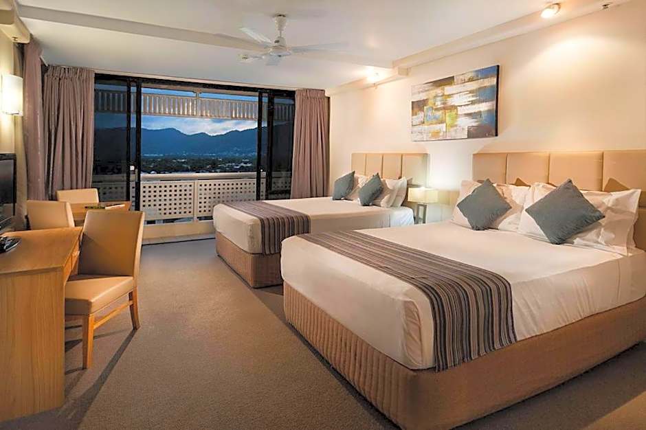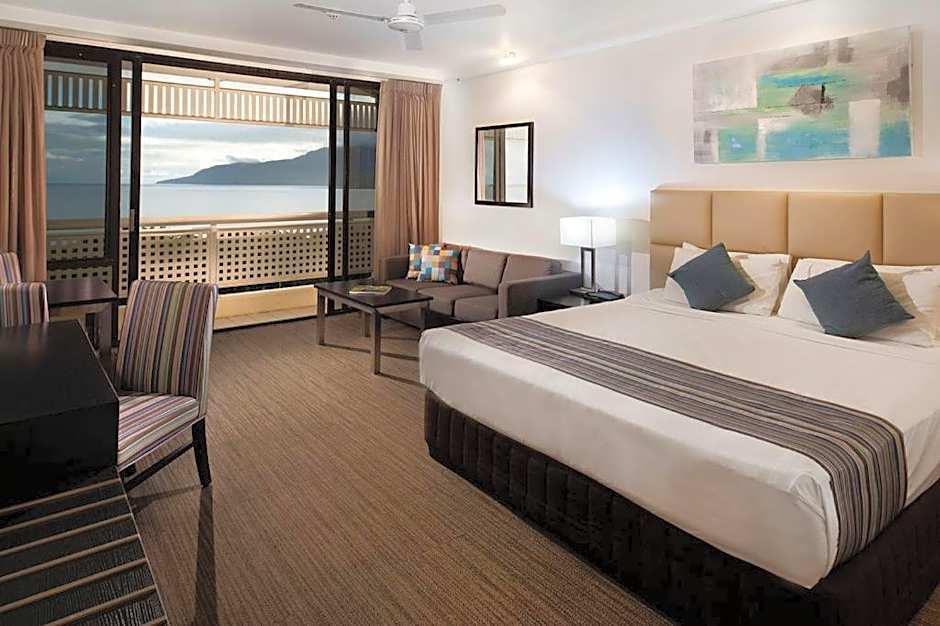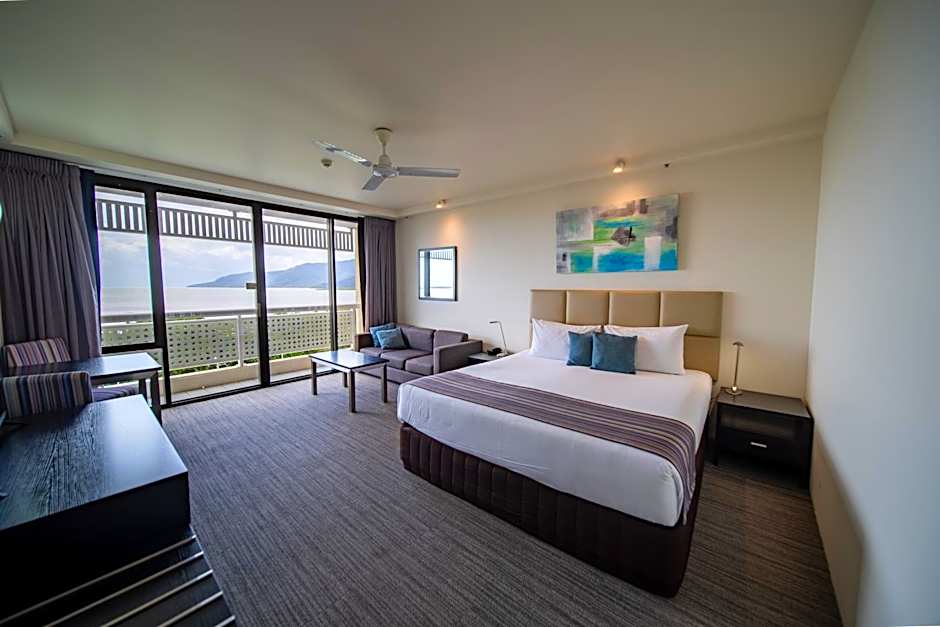 This room features a private balcony overlooking the Coral Sea and Cairns Esplanade.